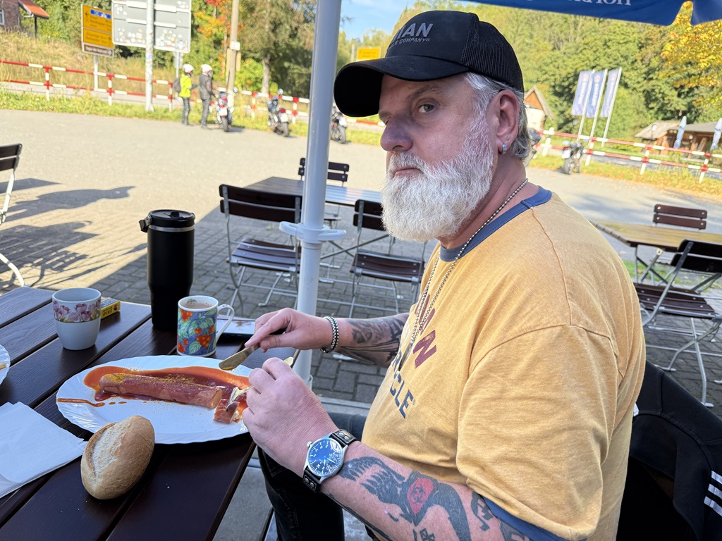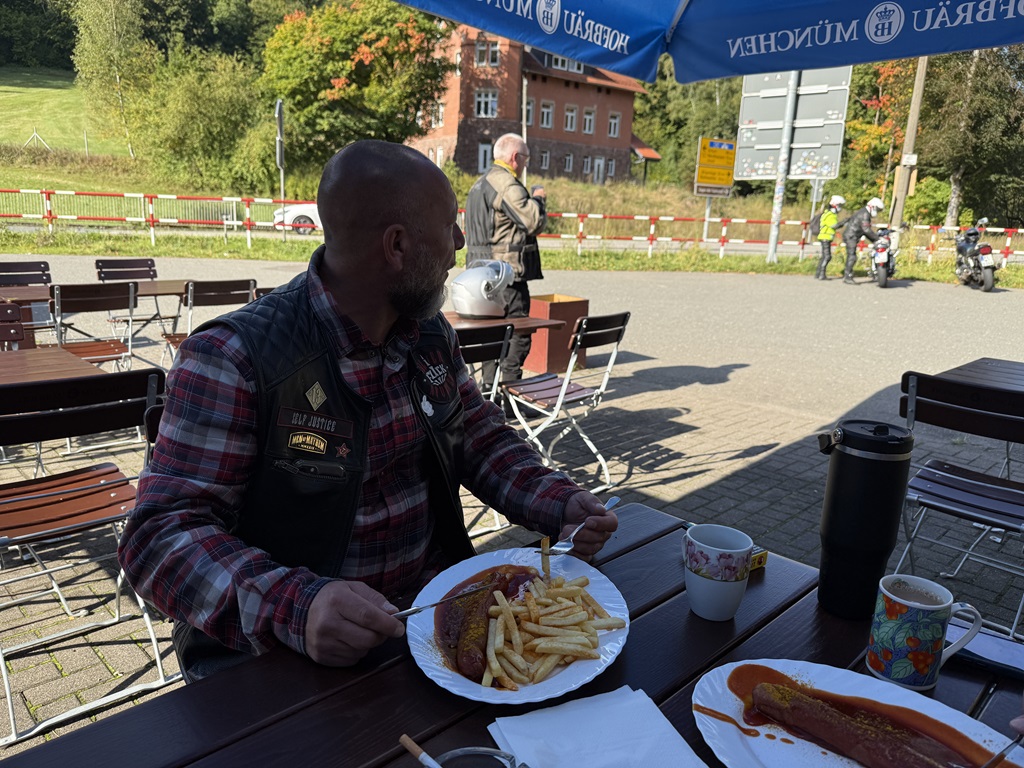 Heute ging es kurz vor 9.00 Uhr zur ARAL-Tankstelle Gispersleben mit Stefan. Planmäßig sollte Steffen dort auf uns warten. Dem war dann auch so. Dann ging es bei recht angenehmen Temperaturen erstmal Richtung "NETZKATER". Dort angekommen, ging es vorrangig erstmal um die Nahrungsaufnahme. BOCKWURST hatten sie auch diesmal nicht. Warum nicht, erschließt sich mir nicht Bin ja sicher nicht der einzige der "gelegentlich" mal eine Bockwurst auf Tour essen möchte. Aber egal, hab mich dann für Nudeln mit Tomatensoße und Jägerschnitzel entschieden.