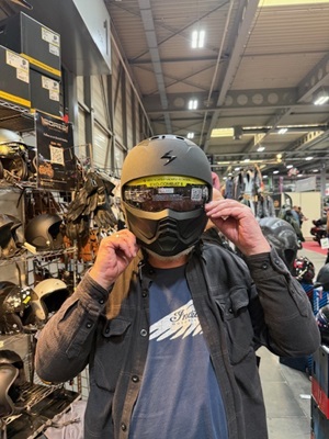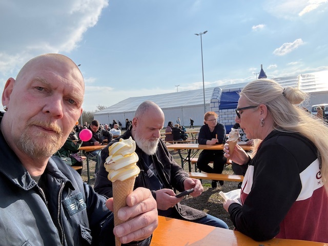 Heute ging es mal wieder zur Motorrad-Messe in Erfurt. 2 Hallen voller Motorräder, Klamotten-Ständen, Zubehör und vieles mehr. Der Rundgang gestaltete sich recht entspannt, da viele Besucher die Messe schon wieder verlassen hatten. Wie immer gab es für mich eine BOCKWURST und ein Eis. Dazu kam, dass ich mich noch nach einer neuen Motorradjacke umgeschaut habe. Stefan war so freundlich und schlug mir eine Marke vor, von der wir dann auch einen Stand gefunden haben. Da der "Messepreis" so unschlagbar war, musste ich natürlich zuschlagen. Ansonsten gab es jetzt nichts wirklich nennenswertes ausser das Jubiläumsmodell von INDIAN, welches echt gut gelungen ist.
