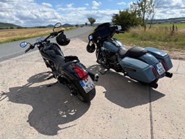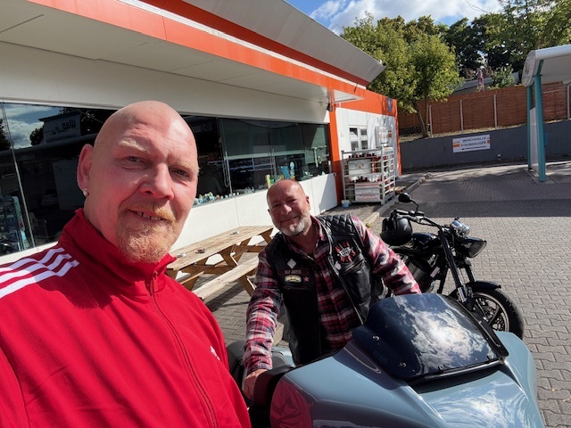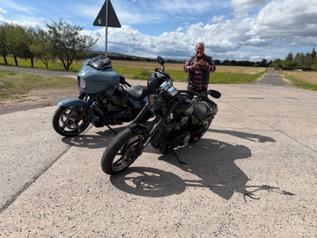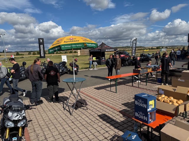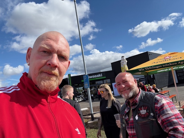 Heute ging es wieder mit Steffen auf Achse. Stefan bevorzugt es weiterhin, weit weg von uns, die Sonne zu genießen aber es sei es ihm gegönnt. So haben wir uns an der BFT-Tankstelle in Erfurt getroffen und sind erstmal zum Sommerfest / Neueröffnung zum INDIAN-Händler STÄRKER-PROFIL gefahren. Dort gab es bei ganz angenehmen Wetter erstmal eine schöne Brause. Dann war bissel gucken angesagt. Da könnte man bei dem einen Modell schon schwach werden wenn da nicht so komische fett gedruckte Zahlen auf dem Schild stehen würden. Positiv zu erwähnen war, dass wir dort noch ein paar bekannte Gesichter getroffen haben, die man schon länger nicht mehr gesehen hat.